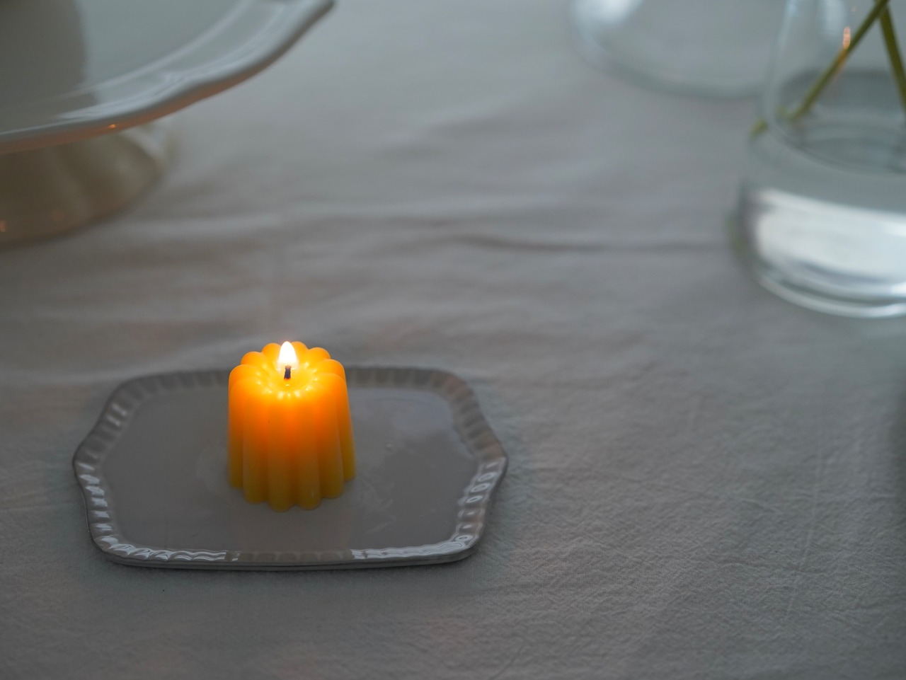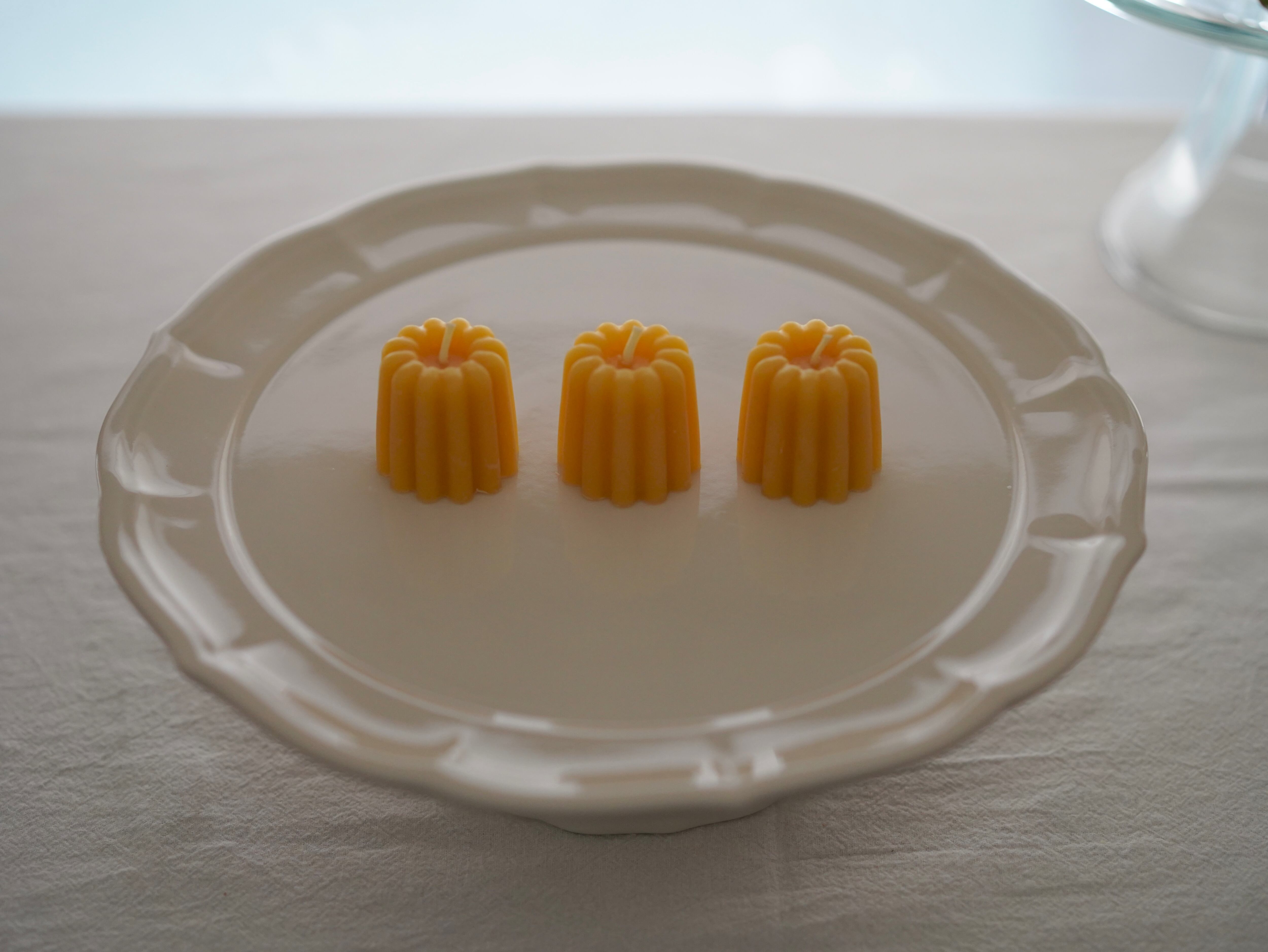 山梨県産の蜜蝋(ミツロウ)を100%使用したカヌレの形のキャンドル。蜜蝋がほのかに甘く香ります。