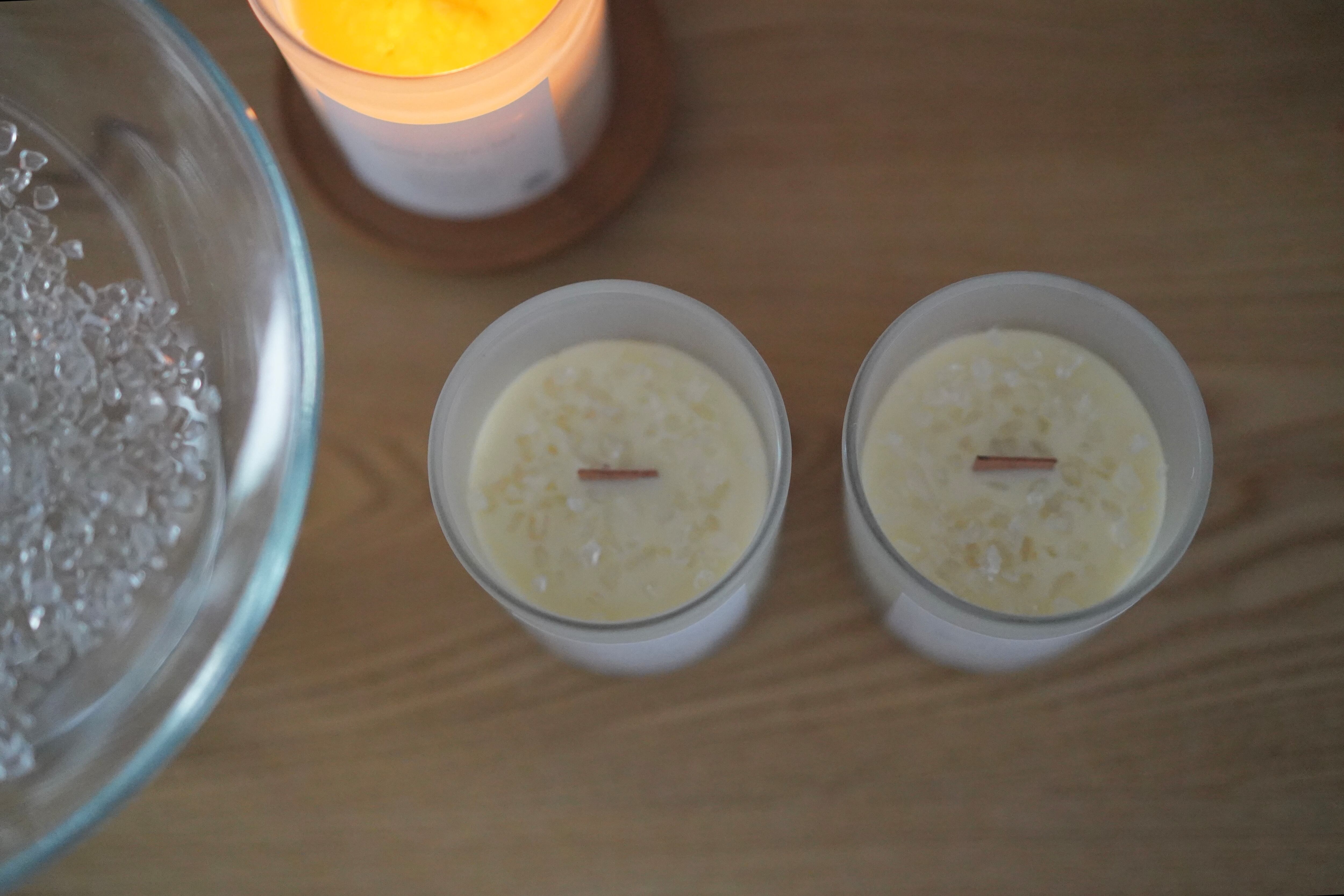 ・素材: 蜜蝋と大豆のブレンドワックス、精油(100%)、さざれ水晶